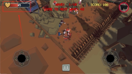 战斗时留意左上方45点的生命数值,通过右上方的武器标识查看剩余弹药,提前规划行进路径以躲开丧尸的合围。