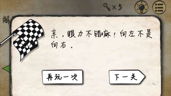 答案是得从右往左看呀!你把手机倒过来,然后移动飞镖扎过去就行啦