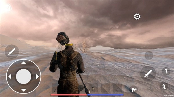 游戏界面的左侧操作区域用于操控角色的移动方向,右侧则集成了武器攻击、跳跃、奔跑等多种动作指令的触发功能。