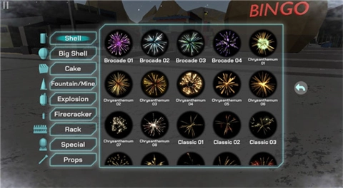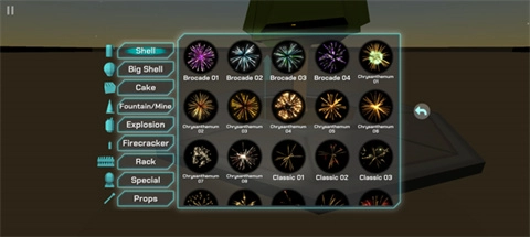 在这里我们可以选择各式各样颜色以及形状的烟花