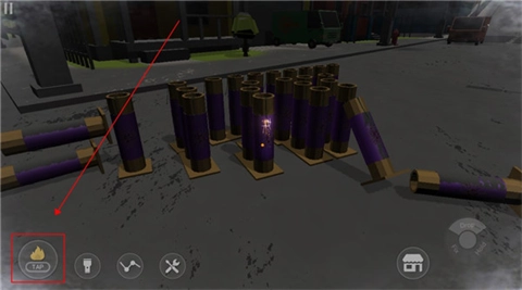 摆放好后,我们滑动屏幕对准烟花,接着点击旁边的打火机就能引燃引线,只需点击一次,其余烟花便会一同被点燃。