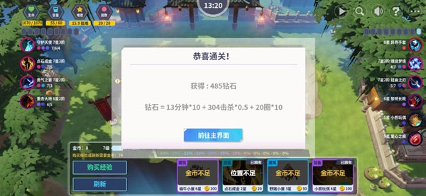 每场游戏结束后,都能获取钻石奖励。使用钻石可永久提高英雄的初始属性和天赋。