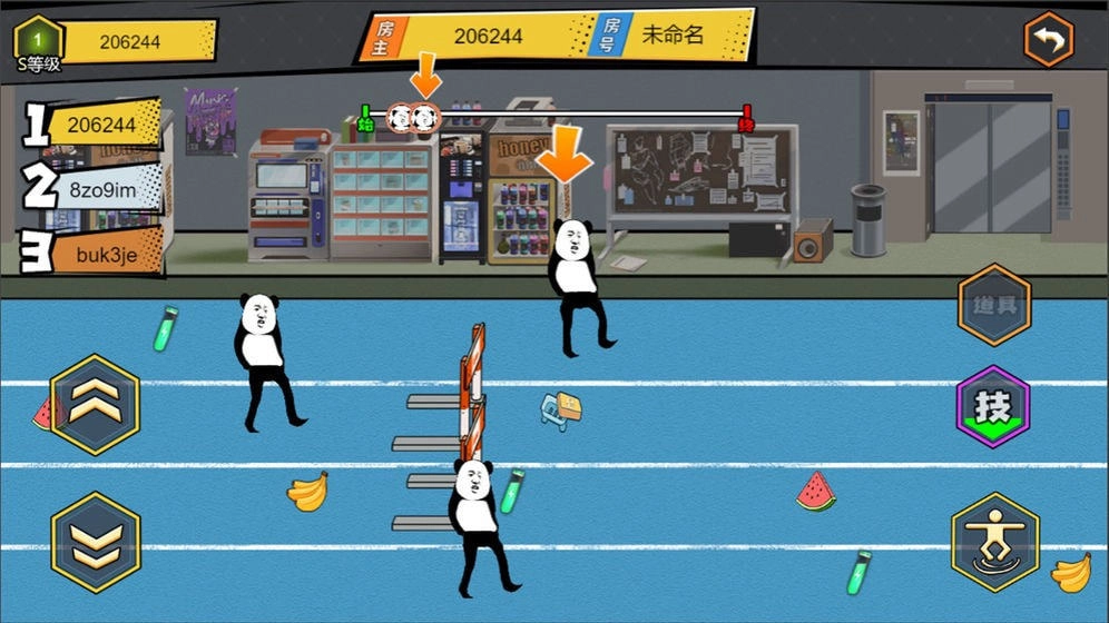 玩家可以和好友进入同一个房间参与田径跑步项目,最终率先冲过终点线的人将赢得比赛。