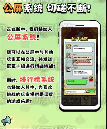 你可以在公屏上和其他玩家互动交流,还能分享冠军卡组发起切磋挑战!另外,游戏内设有排行榜系统,为热衷于挑战的玩家带来更具深度的游戏乐趣。