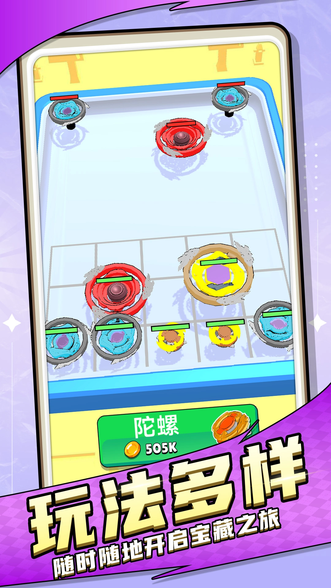 游戏围绕陀螺主题打造了一套别具一格的合成升级机制,每一款陀螺都具备细腻的3D建模与真实的物理表现。