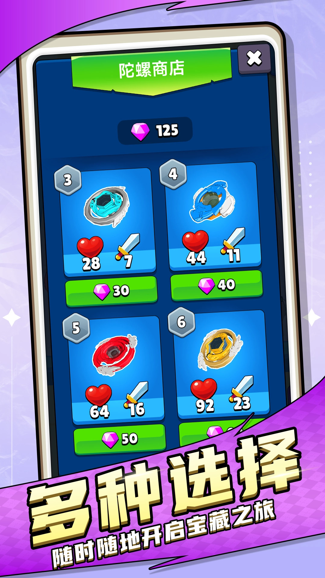 丰富的陀螺收藏系统,超过50种造型各异的陀螺等待玩家解锁收集。