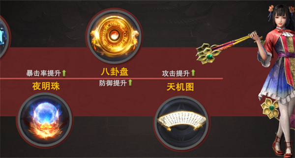 前期可以用元宝优先升级青囊书、八卦盘、天机图、夜明珠,这些能大幅提升对怪物的增伤和减伤属性!