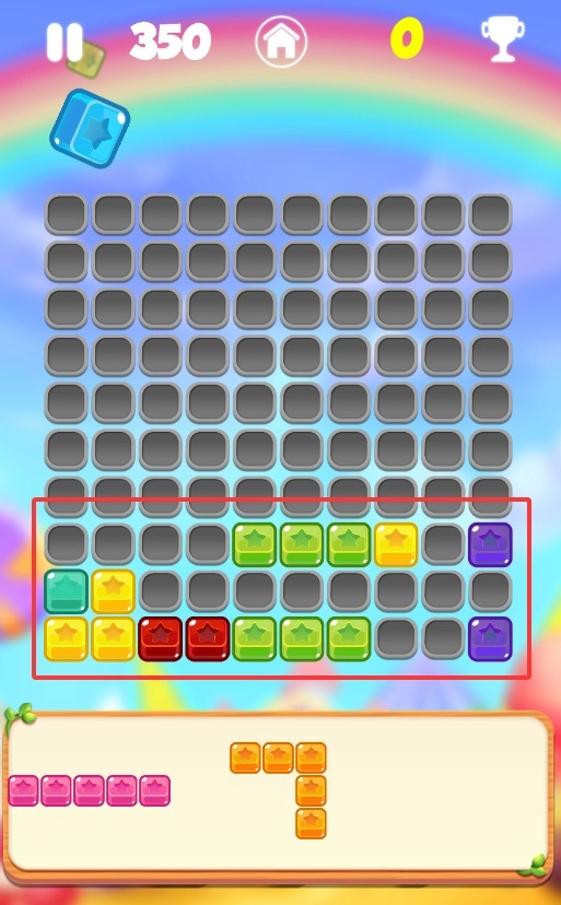 下面堆着色彩斑斓的方块,缤纷多彩的看着就欢快,正等着你去挪动它们。
