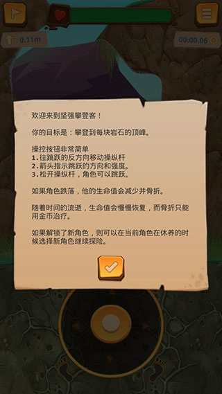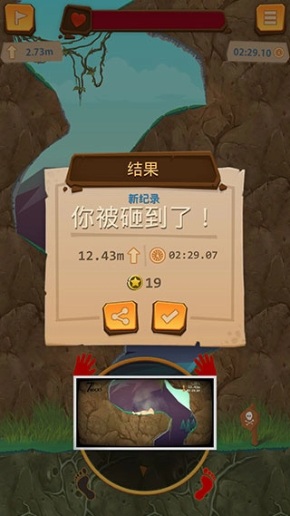 当玩家成功登顶,或者被砸至无法行动时,游戏便会宣告【结束】。