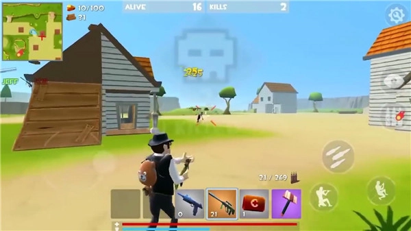 像素堡垒之夜,英文名为Rocket Royale,这是一款第三人称动作射击游戏。游戏里,你需要在自己的领地搭建箭塔、炮塔、魔法塔等各类防御工事,招募工人去地图上收集木材、石头、食物等资源,对这些防御设施进行升级,以此提升它们的攻击力与射程,从而抵挡一波波持续袭来的敌人。