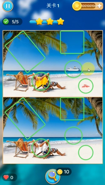 通过找寻不同之处来积累星星数。