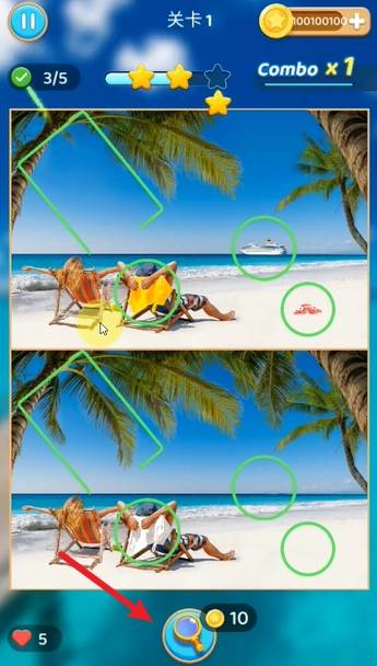 成功找到不同之处后,点击即可将其圈出。