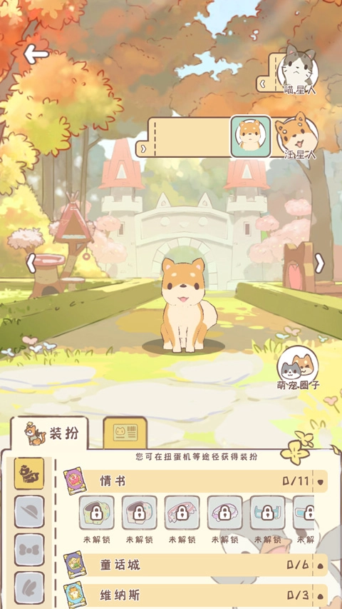 完成后可以摆放各类萌宠,像小猫、小狗之类的,还有其他宠物。