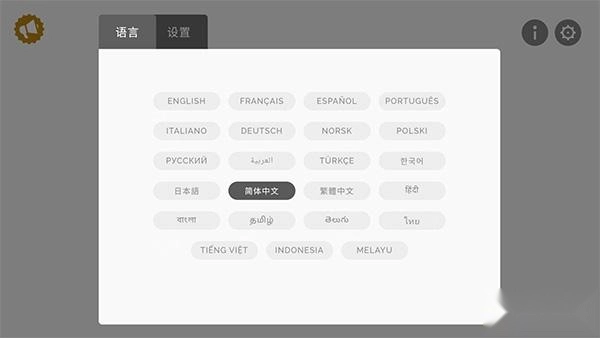 在本站完成节奏盒子的安装后,进入游戏界面,游戏支持简体中文,玩家可以通过主菜单右上角的齿轮图标进入设置,在语言选项中进行选择。