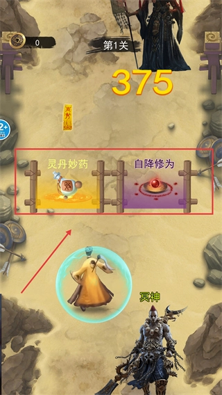 进入游戏后左右滑动屏幕即可开启挑战,初始自带的【攻击力】【暴击伤害】【金币倍率】属性将辅助你踏上修仙之旅。
