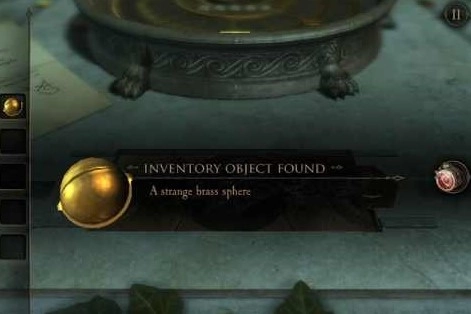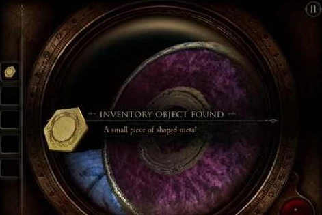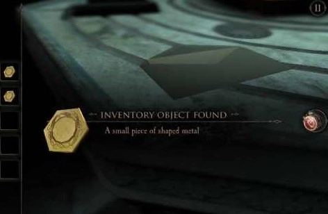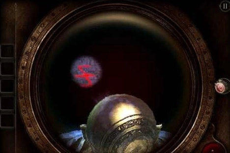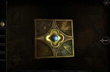 摇动扳手后,会弹出一个仪表和一块面板。点击仪表上的按钮,暂时还不清楚它有什么具体作用,齿轮就开始转动起来。这时我们转向面板,通过目镜观察,发现又是图形拼接的游戏,这部分没什么特别的技巧,只能由玩家亲自来完成拼接——因为拼好的图形会立刻消失。等图形拼接完成后,一把剑就会立刻出现。