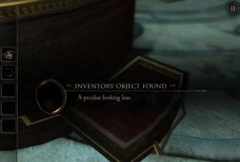 第一章结束后,我们看到了一个宝盒。仔细观察这个宝箱,似乎找不到可以开启的地方。于是我们先用目镜查看宝箱,结果发现其中一个边角有些异常。用手点击那个边角后,我们得到了一本书。