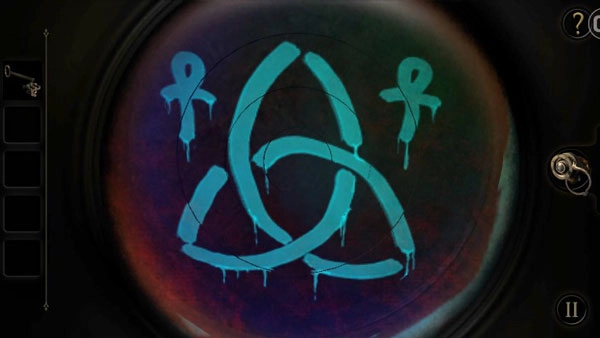 把扳手插进右下方的孔中,晃动扳手,圆形的片就会散开,这时会出现一块木板,通过目镜观察能看到一个图纹(和拼图类似,与第二章的情况相近,由于这里没办法提供图片,玩家稍微探索一下就能拼出图形)