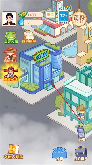 在《男人逆袭记》的主界面,点击创业园进入场景选择页面,即可开启逆袭流程。