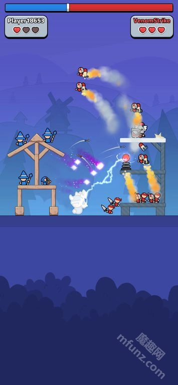 《塔防争霸》是一款让人玩起来特别上头的Q版策略塔防闯关游戏。在游戏里,玩家会被分为红蓝两个阵营,需要合理运用游戏内提供的各种武器来建造防御塔,以此抵御敌方的进攻;同时,也能利用这些武器主动攻击敌人。只要成功保护好己方的防御塔不被摧毁,就算闯关成功啦。这款游戏的核心技巧就在于平衡进攻与防守的力量——既要守护好自己的塔,也要积极想办法去摧毁对方的塔!