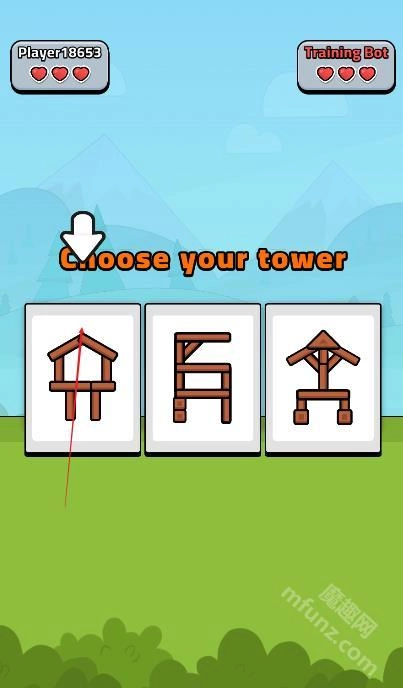 进入塔防争霸游戏,选择防御塔进行搭建。