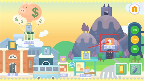 在主界面点击【冒险】按钮进入关卡后,可选择【轻松】【一般】【困难】三种难度模式,建议优先从低难度开始熟悉游戏玩法。