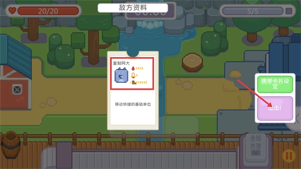 战前先查看【复制阿大】的敌方资料,确认它属于移动速度较快的基础单位,之后点击【出击!】进入战斗环节,做好应对准备。