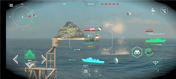 按两下前进键就能自动以最大速度前进,此时允许向敌舰方向移动,雷达也会自动锁定敌方目标。