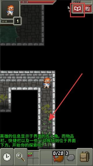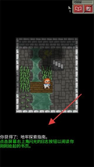 你已获得【地牢探索指南】,请点击屏幕右上角闪烁的【日志】按钮,查阅刚获取的书页内容。