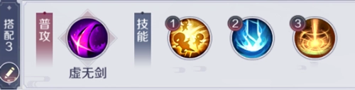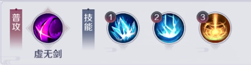 首先普攻选择虚无剑,它是伤害最高的,选这个准没错,后续都默认用虚无剑,就不再额外说明了。为了讲解方便,我们按照技能顺序,把它们分为1技能、2技能和3技能。