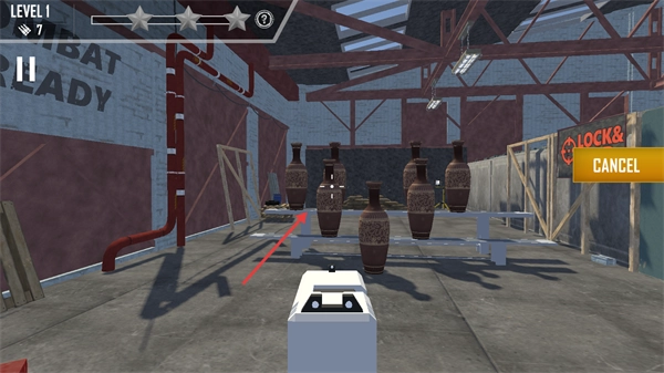 在射击场景中对准花瓶目标,通过精准射击达成任务,以此提升反应速度与射击精度。