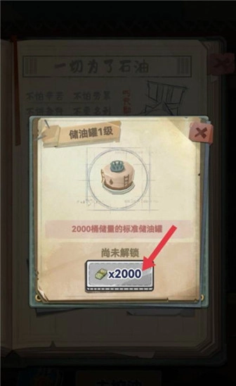 3,接着花费2000金币即可解锁储油罐,解锁之后它会自动启用,1级储油罐的容量为2000桶标准量的油。
