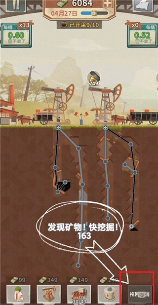 4、采矿过程中可以获得金钱,然后点击小手。