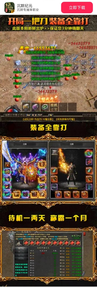 在沉默纪元的世界里,超高爆率让装备随心掉落,满地神装的激情体验,正是你寻觅已久的热血传奇!