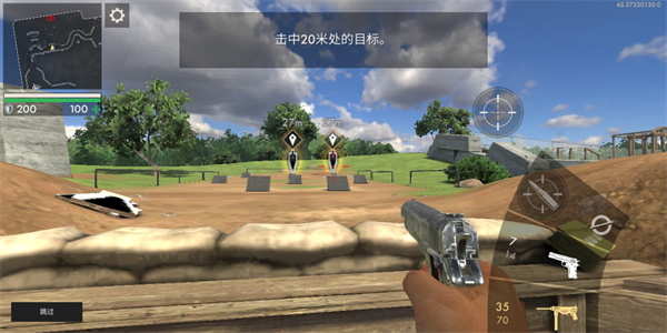 5、接着击中20米外的目标,随后按照新手教程的指引一步步操作就能顺利通关。