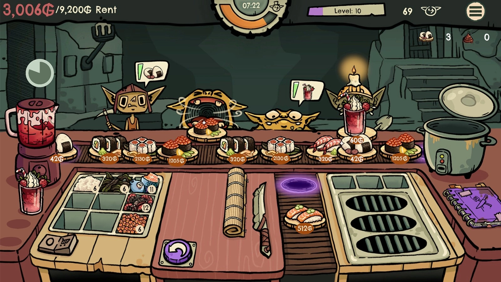 2. 怪物顾客存在个性化需求,需留意其耐心值进度条来调整服务的优先顺序,以此防止收益受损。