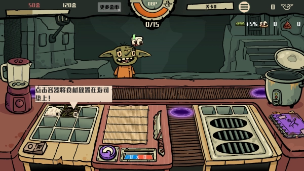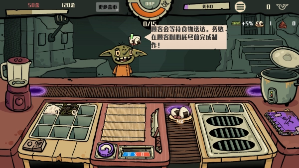 5、烹饪环节具有很强的互动性,食材切片时所用的力度、米饭被按压的紧实程度等操作细节,都会对最终获得的评分以及小费收入产生影响。
