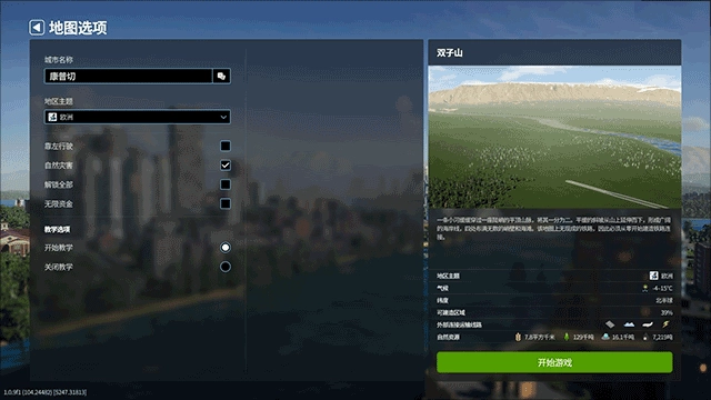 5、接着在此处对即将着手创建的地图展开细节层面的调整,待调整完毕后,点击“开始游戏”按钮就能进入游戏体验了。