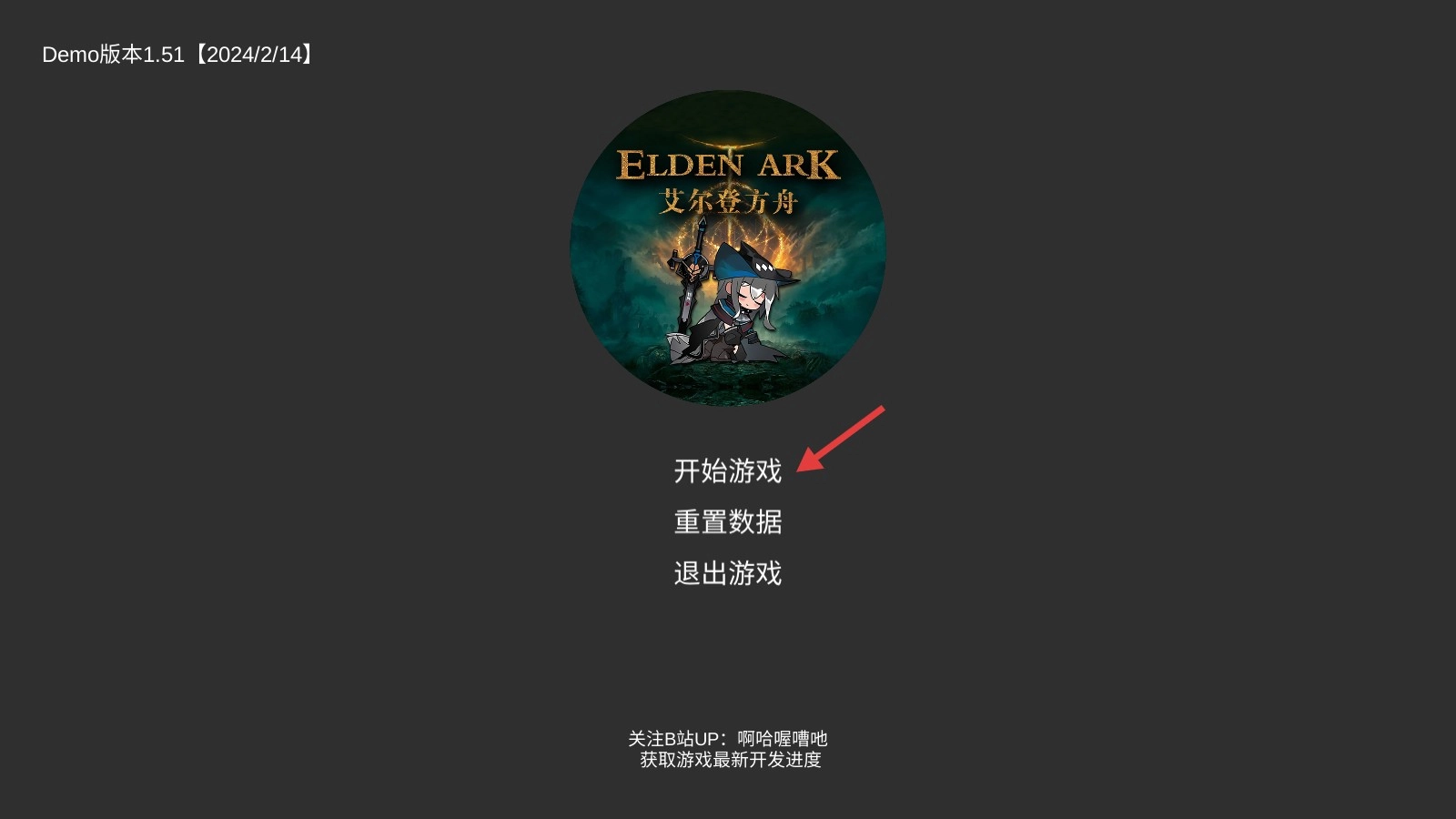 1、我们点击【开始游戏】,踏入艾尔登方舟的世界,开启这场融合了方舟与法环元素的冒险旅程。