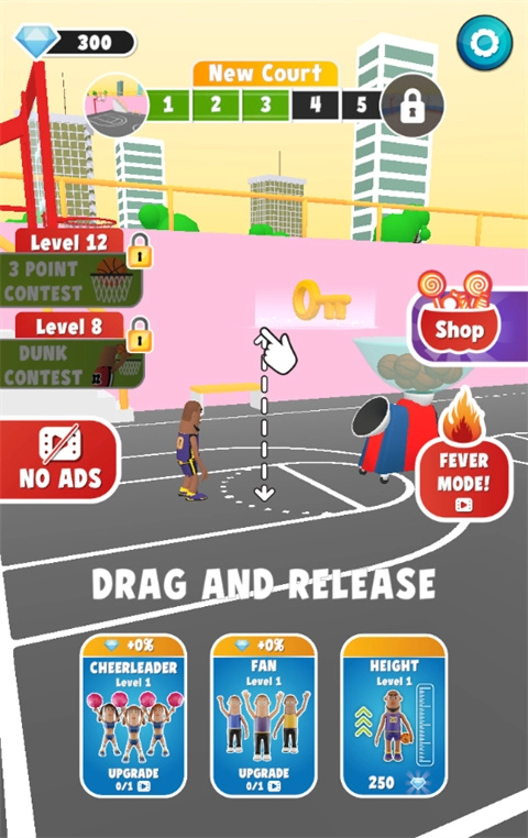 玩家只需用手指拖动游戏里的人物,让其手中的篮球投进篮筐,就能得到相应的得分。