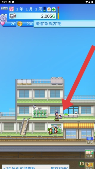 3、所呈现的是商场经营场景,其中可以看到建筑、角色以及资源2005G等元素,这属于模拟经营类游戏中打造百货商场的环节。