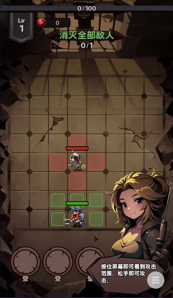 2、按住屏幕即可看到攻击范围,松手即可攻击。