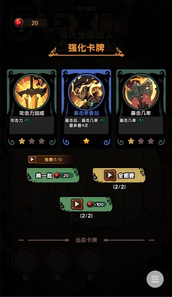 3、挑选技能以增强卡牌的战斗能力,卡牌的颜色代表其品质等级。