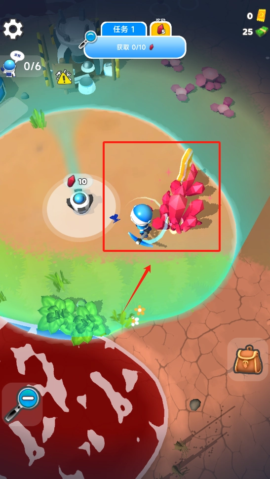 2、控制蓝色头盔的小人攻击红色怪物,收集任务所需的物品,达成进度目标。