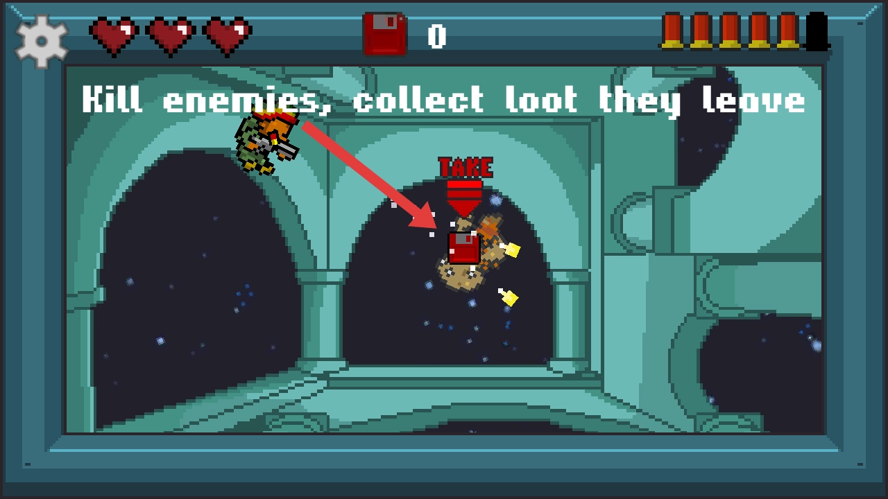 3、用武器击倒敌人后,要靠近并拾取其掉落的【TAKE】标识道具,以此获得游戏资源。
