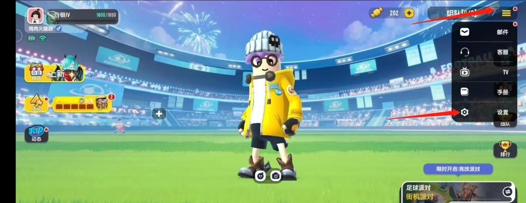 1、进入游戏后,先点击主界面右上角的展开图标,此时会弹出一个小窗口,点击窗口内的“设置”选项即可进入设置界面。