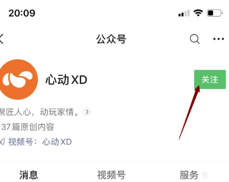 1、首先我们打开微信搜索心动XD,然后点击关注。