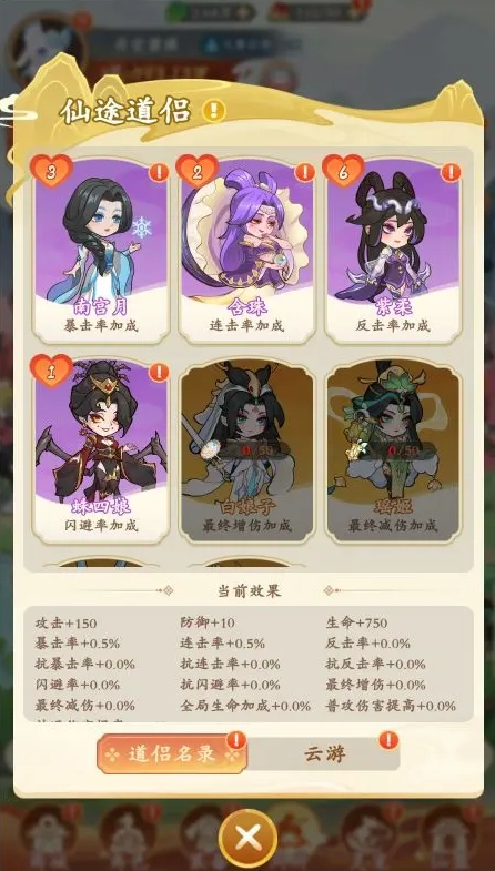 耗费精力开展云游活动,在云游的路途中会随机邂逅道侣,进而提升彼此的好感度。