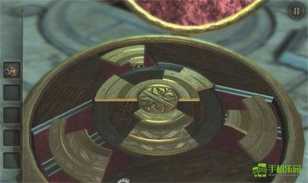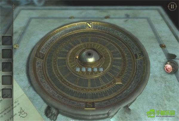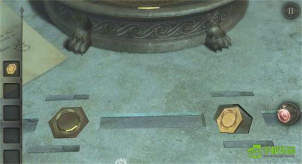 四、取出金属球,放置在桌子中央的圆盘上,接着输入“SESWN”。让指针在磁盘上短暂停留后,会出现带有两个方向箭头的圆形浮雕,按照箭头指示用手指将其拉开,即可获得一块正方形的金属。