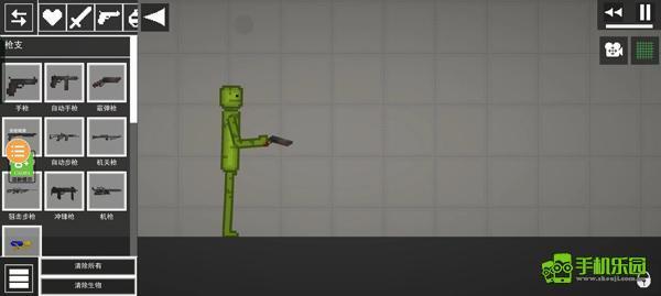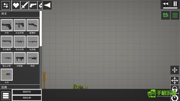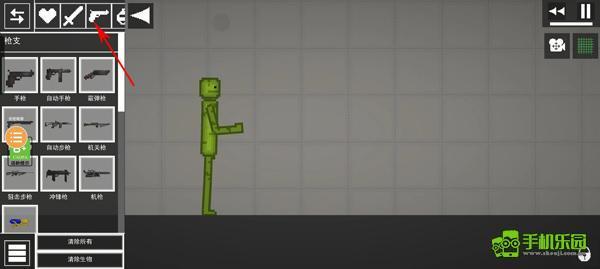 4、当胳膊在空中停住后,我们要在左上角找到枪械图标,通过点击它来选择枪械。